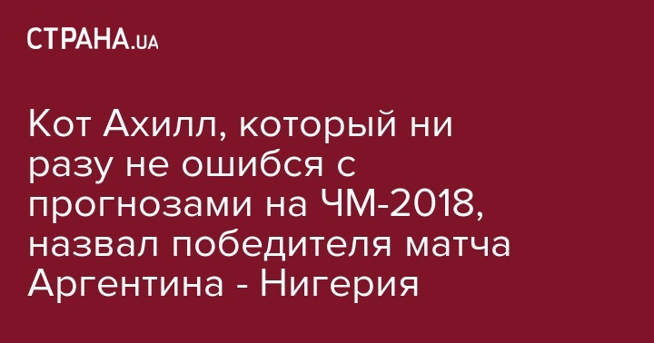 Кот Ахилл, который ни разу не ошибся с прогнозами на ЧМ-2018, назвал победителя матча Аргентина - Нигерия