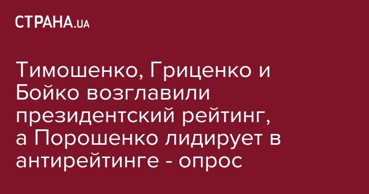 Тимошенко, Гриценко и Бойко возглавили президентский рейтинг, а Порошенко лидирует в антирейтинге - опрос