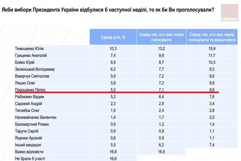 Если брать процент от всех опрошенных, то Порошенко вообще на седьмом месте: