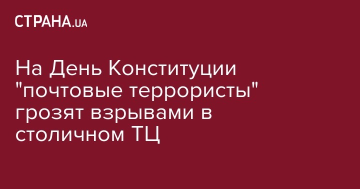 На День Конституции, 28 июня, "почтовые террористы" грозят взрывами в одном из столичных торговых центров (ТЦ).