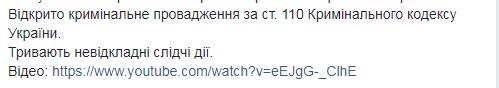 Открыто уголовное производство по ст. 110 Уголовного кодекса Украины.