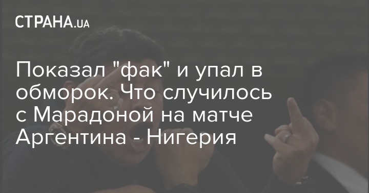Во время поединка легенда футбола вела себя немного странно. А после финального свистка Марадона показал в камеры неприличный жест - после чего попытался упасть в обморок.