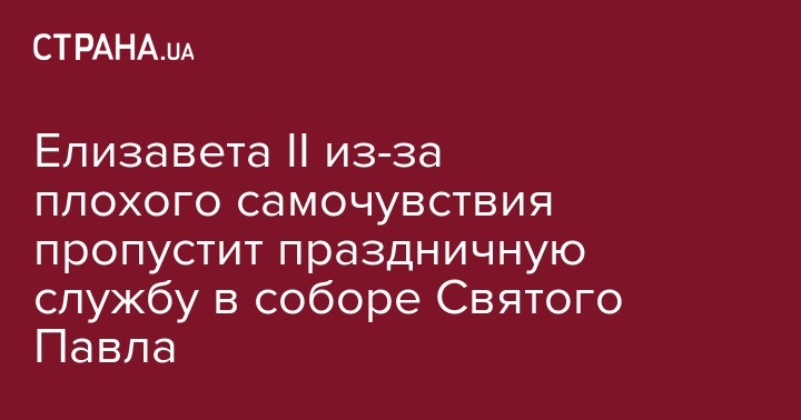 Елизавета II из-за плохого самочувствия пропустит праздничную службу в соборе Святого Павла