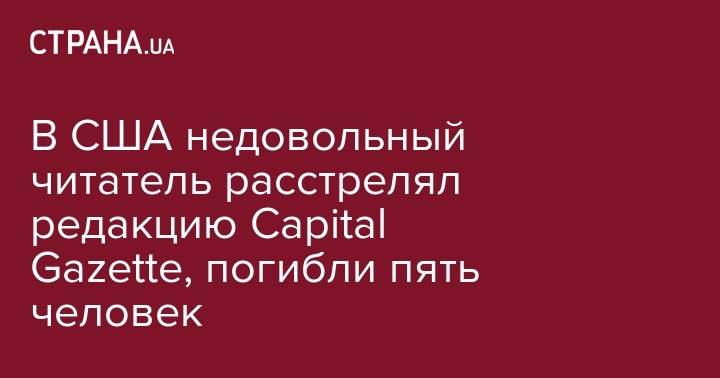 Редакция газеты Capital Gazette в Аннаполисе подверглась нападению около 14:40 по местному времени 28 июня. Неизвестный открыл огонь по сотрудникам издания, после чего намеревался скрыться. Сотрудники издания пытались укрыться от нападавшего под столами в офисах. Как рассказал один из очевидцев — журналист газеты Фил Дэвис, нападавший открыл огонь по редакции через стеклянную дверь.