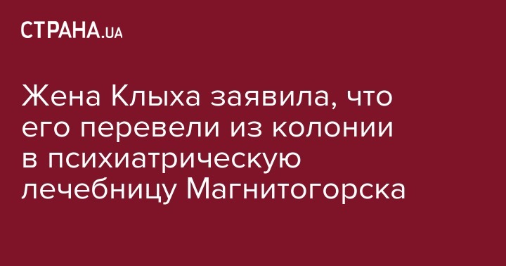 Жена Клыха заявила, что его перевели из колонии в психиатрическую лечебницу Магнитогорска