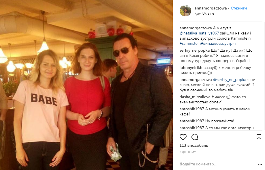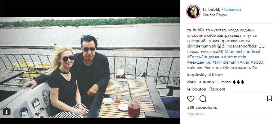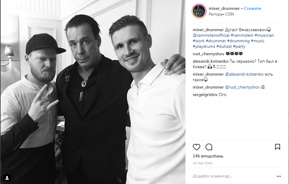 Ударник киевского кавер-группы The Max Band выложил фото с вокалистом Rammstein из ресторана Coin в Киеве. Фото с Линдеманном публикуют и другие пользователи в Instargram.