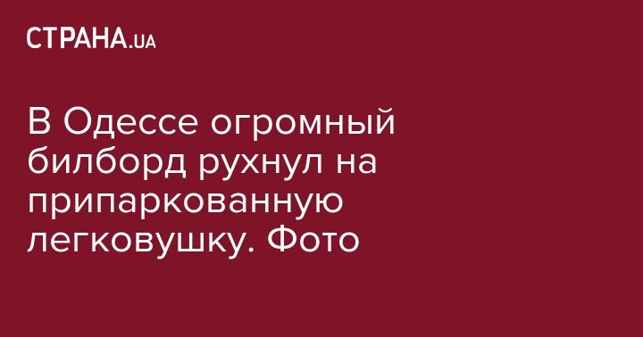 В Одессе огромный билборд рухнул на припаркованную легковушку. Фото