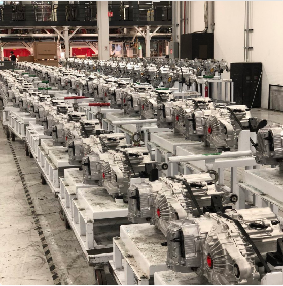 Он также поделился изображениями производства сидений - то, что Tesla ввела несколько лет назад.