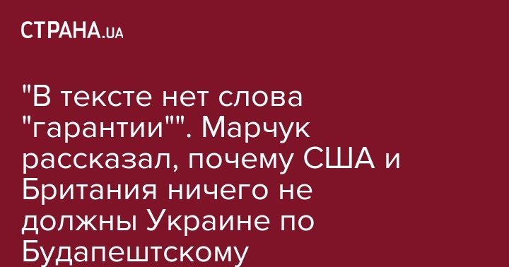 "В тексте нет слова "гарантии"". Марчук рассказал, почему США и Британия ничего не должны Украине по Будапештскому меморандуму