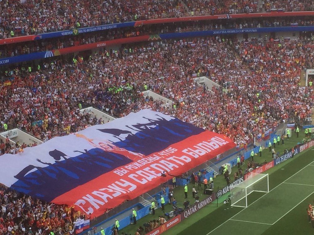 Болельщики на "Лужниках" поддерживают своих. Испанцев ожидаемо не слышно.