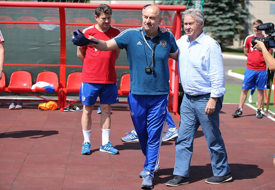 14.50 Одну из тренировок сборной России посетил знаменитый тренер Гус Хиддинк.