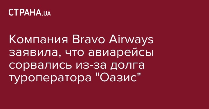 Авиакомпания Bravo Airways сообщила, что отмена рейсов, в результате чего в аэропортах застряли сотни украиснких туристов, связана с долгом туроператора в 25 миллионов гривен. Об этом сообщает пресс-служба авиакомпании.