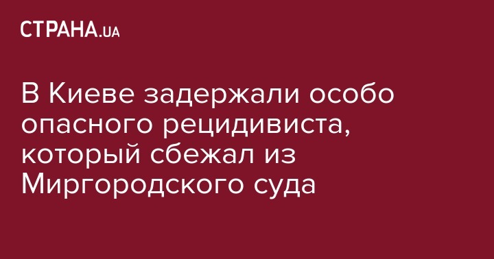 В Киеве полиция задержала особо опасного преступника, сбежавшего на днях из зала заседаний Миргородского районного суда Полтавской области. Об этом говорится в сообщении пресс-службы Министерства внутренних дел на странице в Facebook.