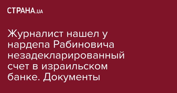 Журналист нашел у нардепа Рабиновича незадекларированный счет в израильском банке. Документы