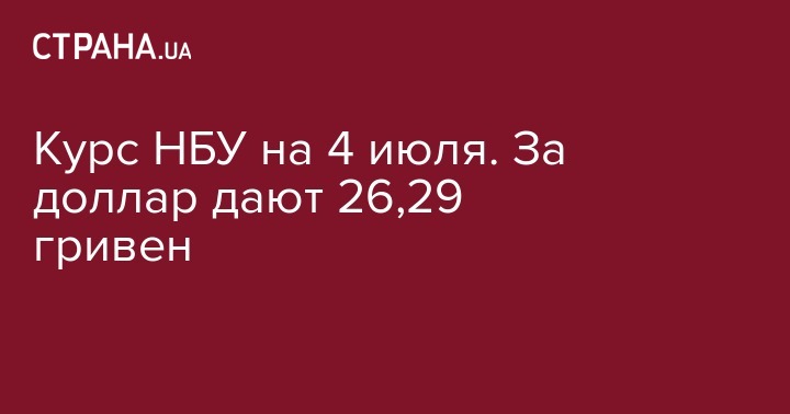Курс НБУ на 4 июля. За доллар дают 26,29 гривен