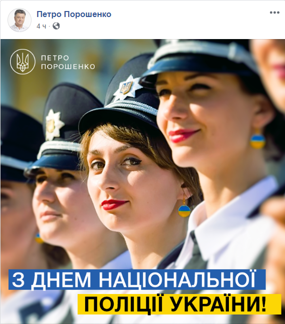 Петр Порошенко запостил в Facebook праздничную картинку ко Дню полиции, а через пару часов поздравил США с Днем независимости похожей картинкой.