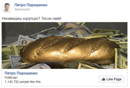 В социальных сетях начали обсуждать рекламу Петра Порошенко в Facebook. Во всех рекламных публикациях страница президента призывает ставить ей лайк.