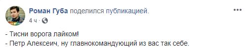 Пользователь Роман Губа: "- Тисни ворога лайком!