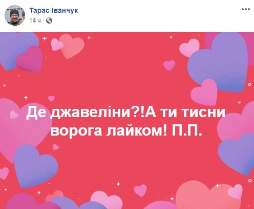 Тарас Иванчук: "Где джавелины? А ты жми врага лайком!"