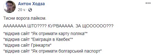 Блогер Антон Ходза в шутку задумался об эмиграции: "Тисни ворога лайком. АААААААА ШТО???? КУРВААААА. ЗА ЩОООООО???