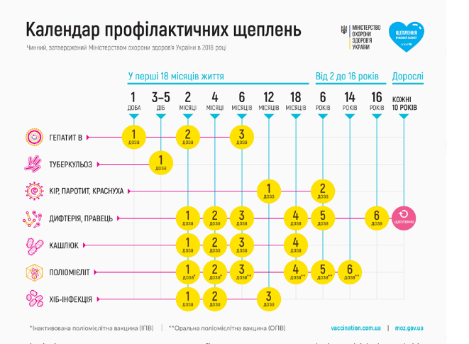 Кроме того, на странице Супрун разместила ссылки на приказ о внесении изменений в календарь профилактических прививок в Украине и сам обновленный календарь.
