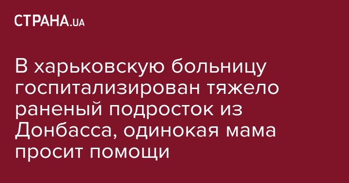 В харьковскую больницу госпитализирован тяжело раненый подросток из Донбасса, одинокая мама просит помощи