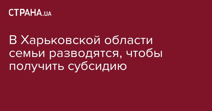 В Харьковской области семьи разводятся, чтобы получить субсидию