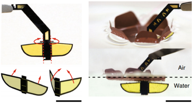 Модифицированный робот HAMR и элементы робота, предназначенные для перемещения по воде, фото: Nature Communications
