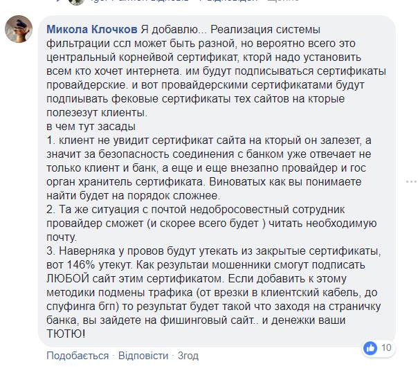 Другой IT-специалист Михаил Клочков пишет, что после нововведений, которые предлагают власти, провайдеры смогут читать нашу электронную почту и контролировать банкинг.