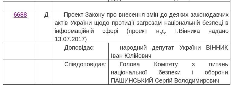 Именно его комитет порекомендовал вчера Раде принять законопроект в первом чтении и за основу. Согласно повестке дня, в парламенте сегодня докладчиками по этому законопроекту будут Винник и Пашинский.