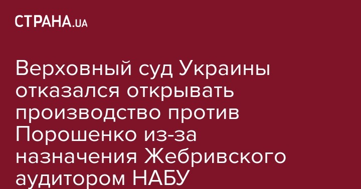 Верховный суд Украины отказался начинать производство по иску активистов против президента Украины Петра Порошенко, по поводу назначения аудитором Национального антикоррупционного бюро (НАБУ) Павла Жебривского.