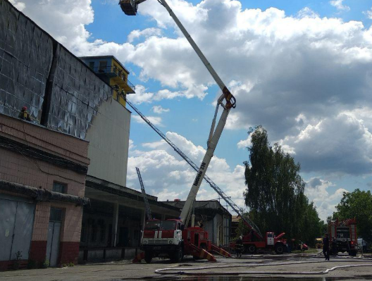 Фотографии с пожара на комбинате Прогресс в Киеве обнародовали киевские спасатели.