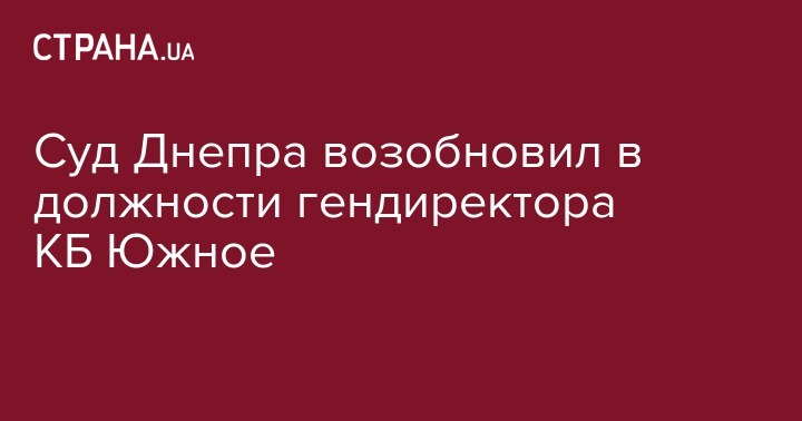 Суд Днепра принял решение возобновить Александра Дегтярева в должности гендиректор КБ "Южное".