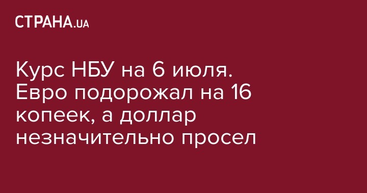 Согласно установленному в пятницу, 6 июля, Национальным банком Украины официальному курсу гривны относительно американского доллара и евро, европейская валюта продолжает дорожать, а доллар незначительно просел.