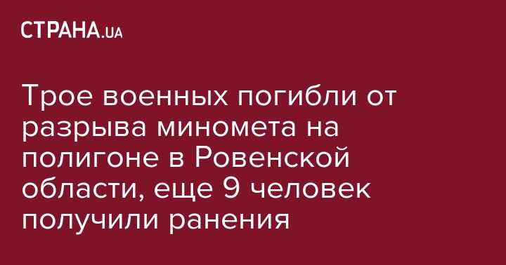 Трое военных погибли от разрыва миномета на полигоне в Ровенской области, еще 9 человек получили ранения