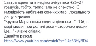Об этом на своей странице в Facebook сообщила синоптик Наталья Диденко.