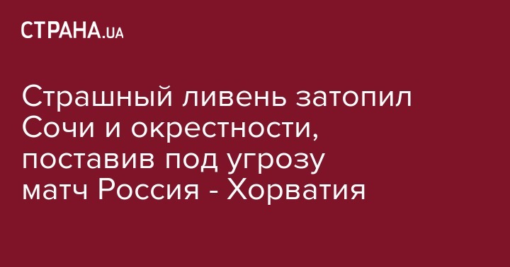 Страшный, буквально тропический ливень обрушился на российские города Сочи и Адлер, где завтра на стадионе "Фишт" должны сыграть четвертьфинальный матч чемпионата мира по футболу команды Хорватии и России.