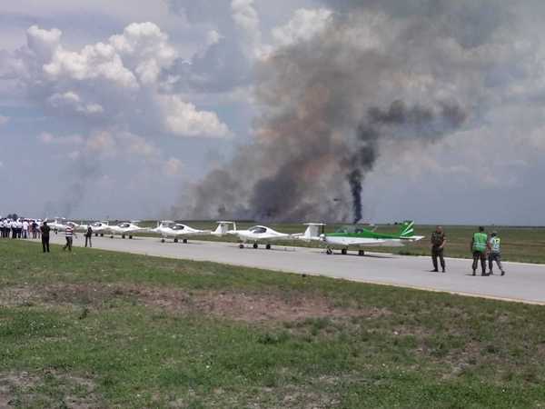 Истребитель рухнул в поле недалеко от базы и взорвался после удара об землю. На видео виден столб черного дыма на месте авиакатастрофы. На месте происшествия работают пожарные.