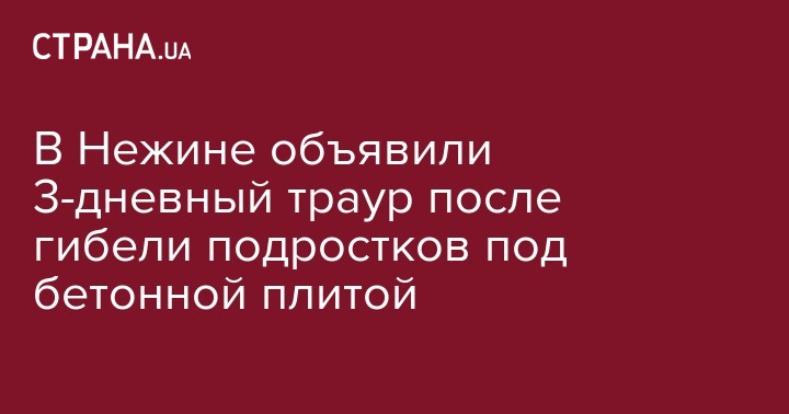 В Нежине Черниговской области объявлен траур до 8 июля по факту гибели трех подростков на стройке, полиция возбудила два уголовных дела.