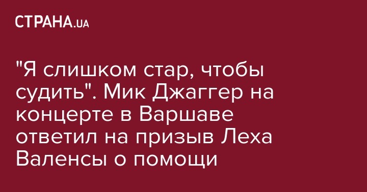 Вокалист The Rolling Stones Мик Джаггер ответил на просьбу экс-президента Польши Леха Валенса поддержать протестные акции против судебных реформ.
