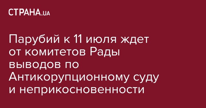 Спикер парламента Андрей Парубий надеется, что профильные комитеты 11 июля утвердят выводы по проектам изменений в законах в связи с созданием Антикоррупционного суда и касательно ограничения депутатской неприкосновенности.
