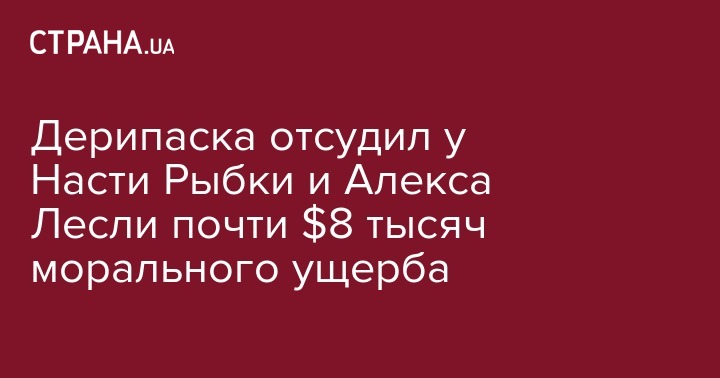В понедельник, 9 июля, Усть-Лабинский районный суд в Краснодарском крае удовлетворил гражданский иск бизнесмена Олега Дерипаски к Анастасии Вашукевич (Насте Рыбке) и Александру Кириллову (Алексе Лесли) о взыскании с каждого из них в качестве компенсации морального вреда по 500 тыс. рублей (около $8 тысяч)
