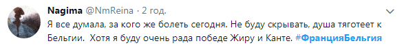 80 Жиру случайно сбил Азара перед штрафной Франции, но мяч остался у бельгийцев и судья свистеть не стал.