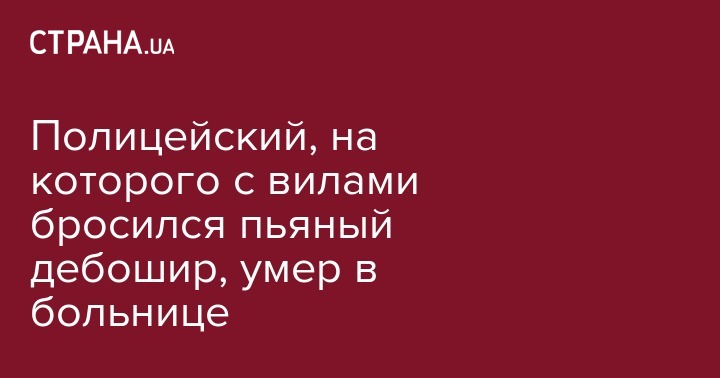 Полицейский, на которого напали с вилами, сегодня умер. Он прибыл на сообщение о конфликте между соседями. Трагедия произошла в Ровенской области.
