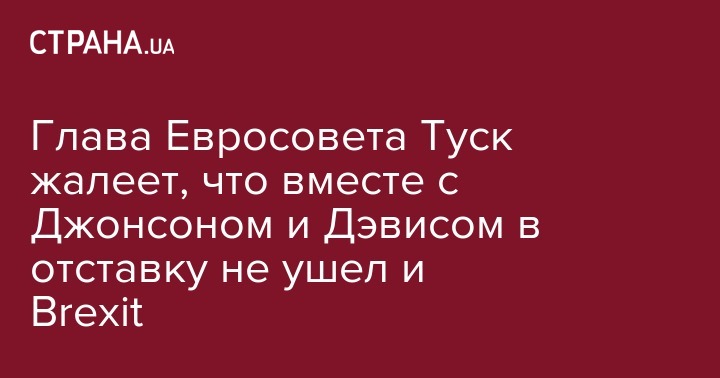 Глава Евросовета Туск жалеет, что вместе с Джонсоном и Дэвисом в отставку не ушел и Brexit