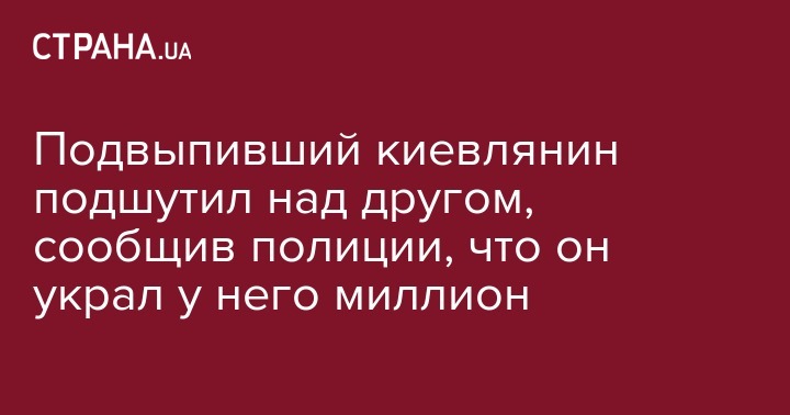 Подвыпивший киевлянин подшутил над другом, сообщив полиции, что он украл у него миллион