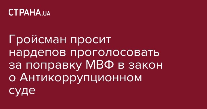 Премьер-министр Украины Владимир Гройсман призывает депутатов Верховной Рады принять в четверг, 12 июля, поправку об апелляции в закон о Высшем антикоррупционном суде Украины (ВАКС), предложенную Международным валютным фондом (МВФ). Об этом сообщает "Интерфакс-Украина".