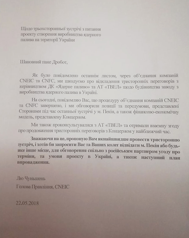 Накануне в СМИ появилось сообщение о якобы письме министра энергетики Игоря Насалика на имя первого заместителя директора корпорации "Росатом" Кирилла Комарова о перспективах для наращивания сотрудничества в сфере атомной энергетики.
