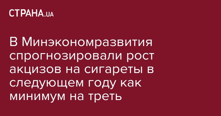 В Министерстве экономического развития и торговли Украины спрогнозировали рост в структуре акцизного налога с сигарет и др. табачных изделий на 30% в 2018 году.