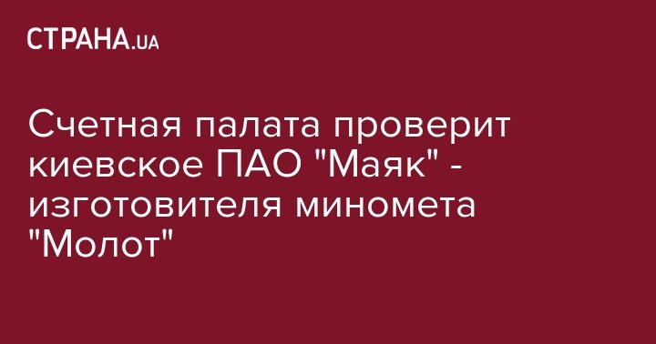 Счетная палата проверит киевское ПАО "Маяк" - изготовителя миномета "Молот"